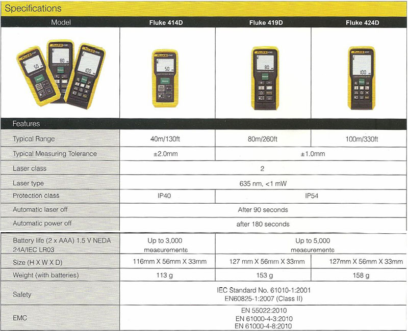 Fluke 414D, 419D and 424D Laser Distance Meters