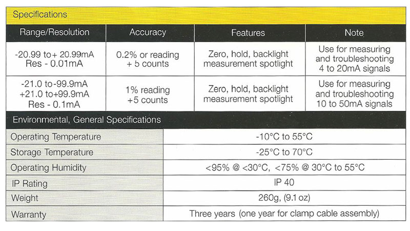 - Measure 4 to 20 mA output signals from transmitters without "breaking the loop"