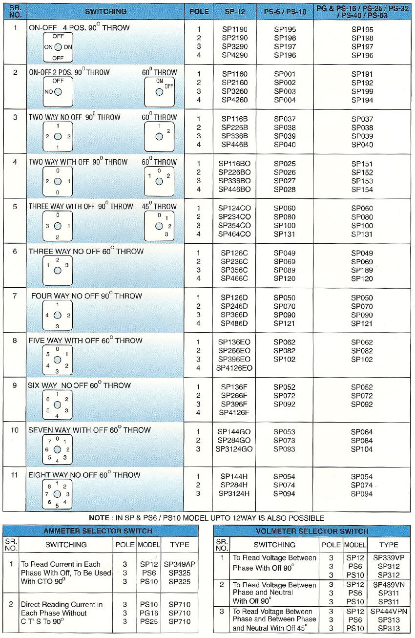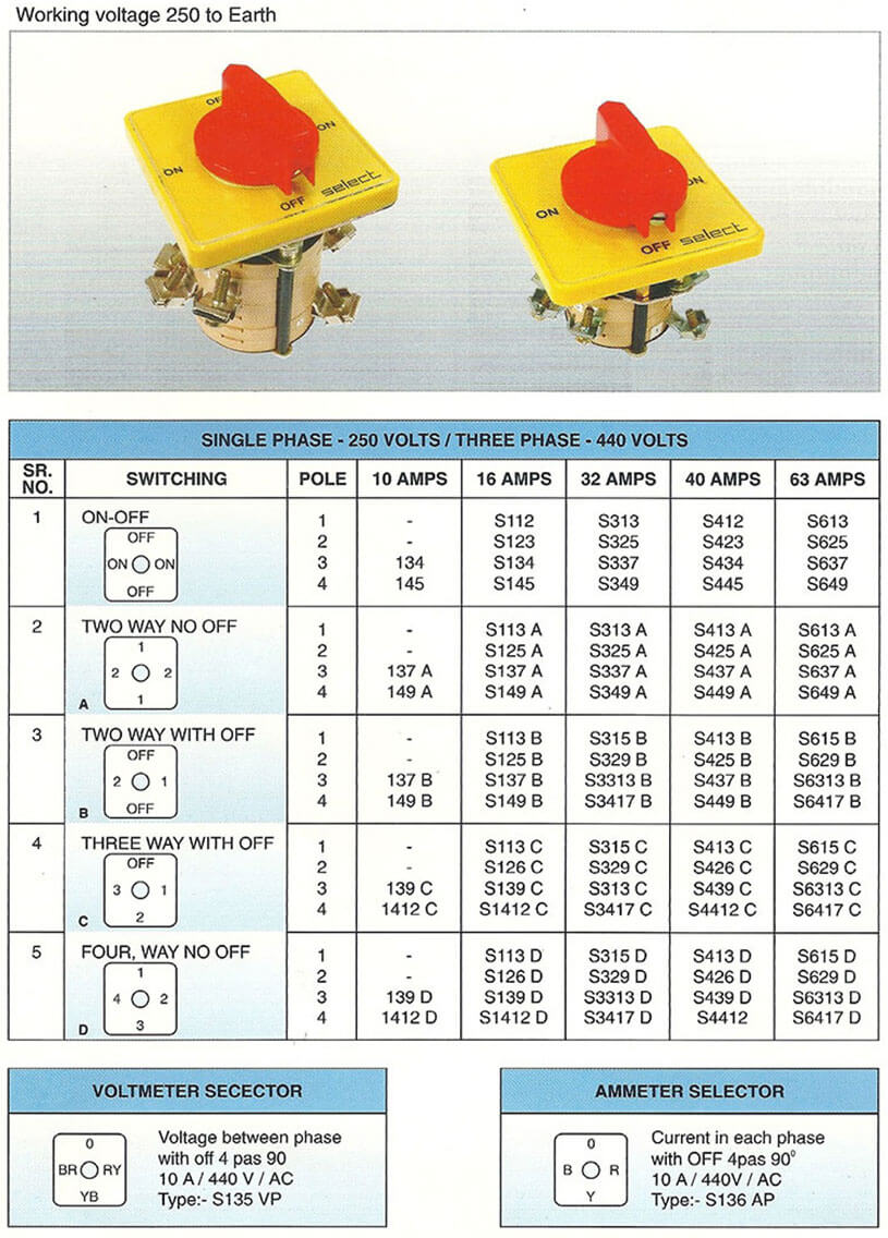 Rotary cam switches are aesthetically designed providing robust performance with practically unlimited switching possibilities. Select switches are Manufacturer in accordance with latest engineering practices using high grade engineering malerial conlorming to International standards.